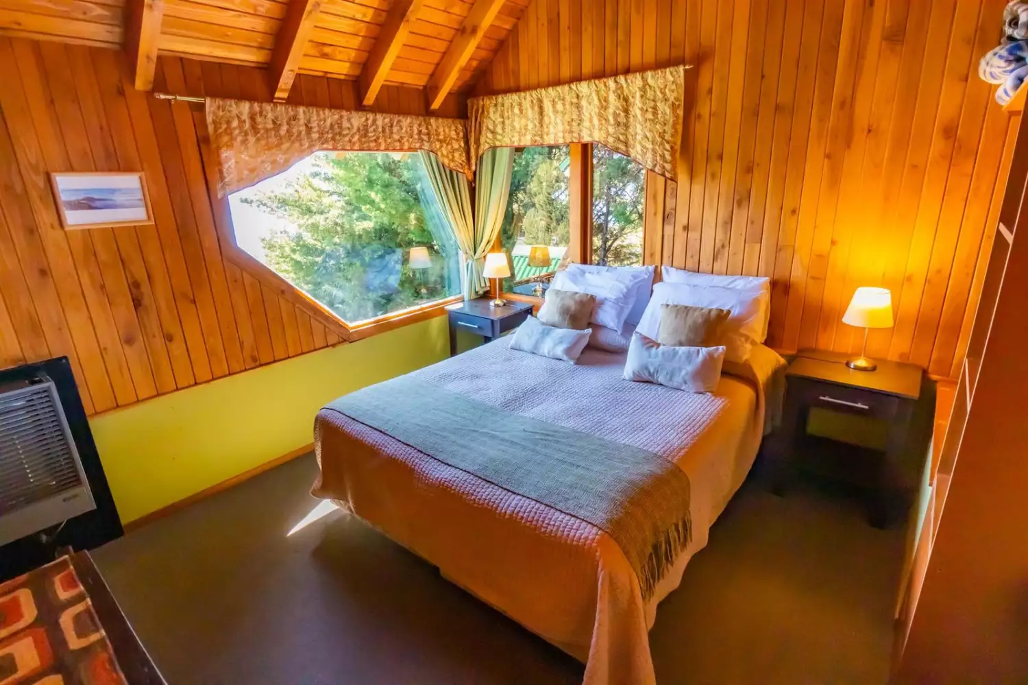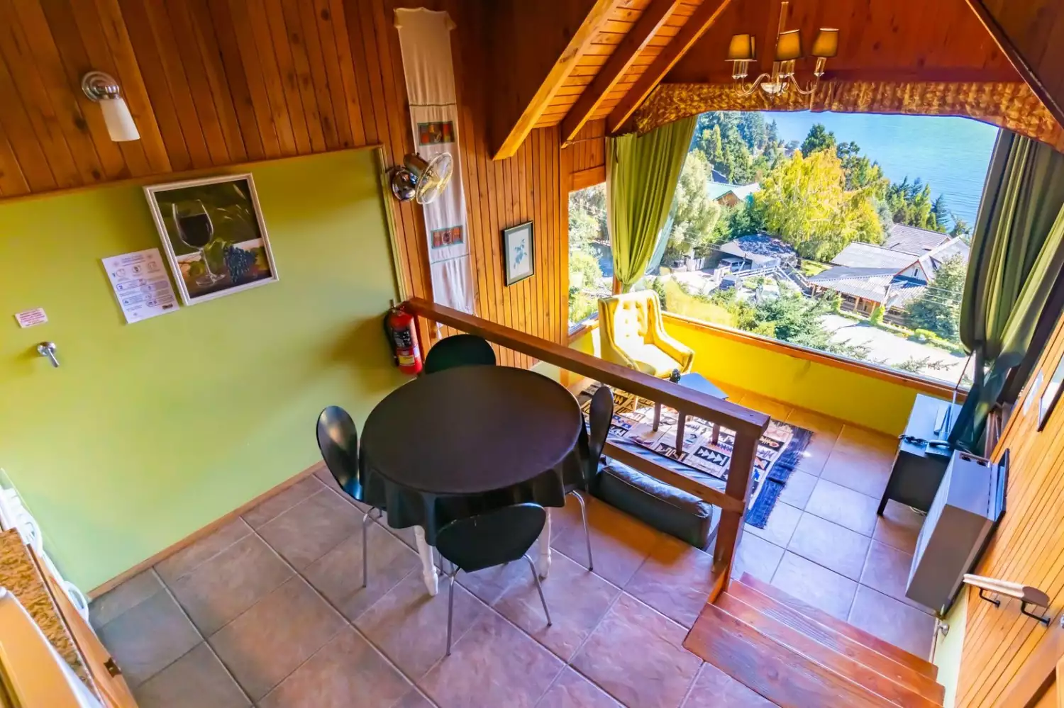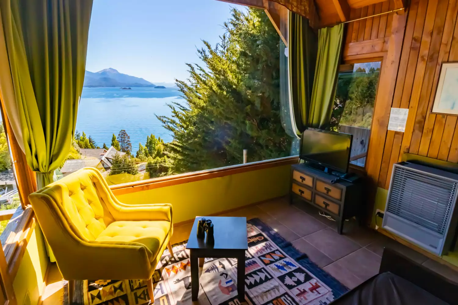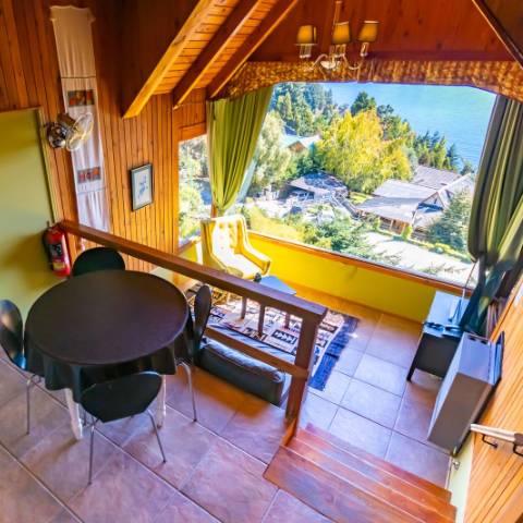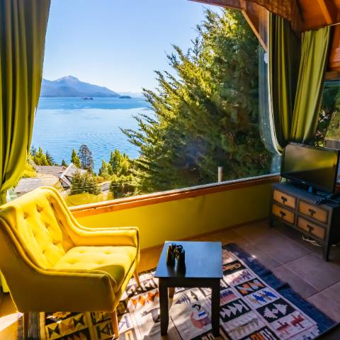 Espectacular vista Panorámica al Lago Nahuel Huapi, Isla Victoria y Cordillera de los Andes. Ropa de cama , toallas, vajilla, horno microondas, heladera, tostadora y cafetera eléctricas, secador de cabello, Prismáticos de largo alcance, Internet WiFi fibra òptica. Direct TV Satelital., Netflix, etc.