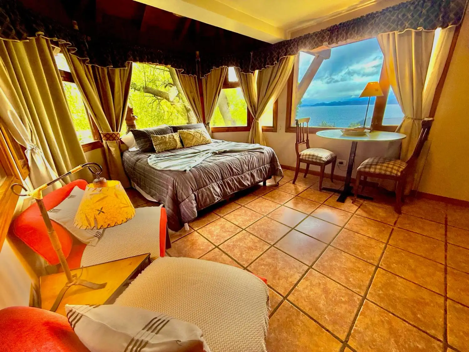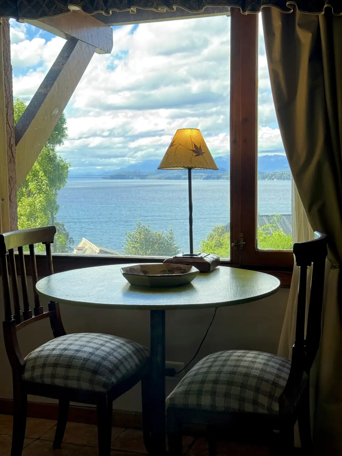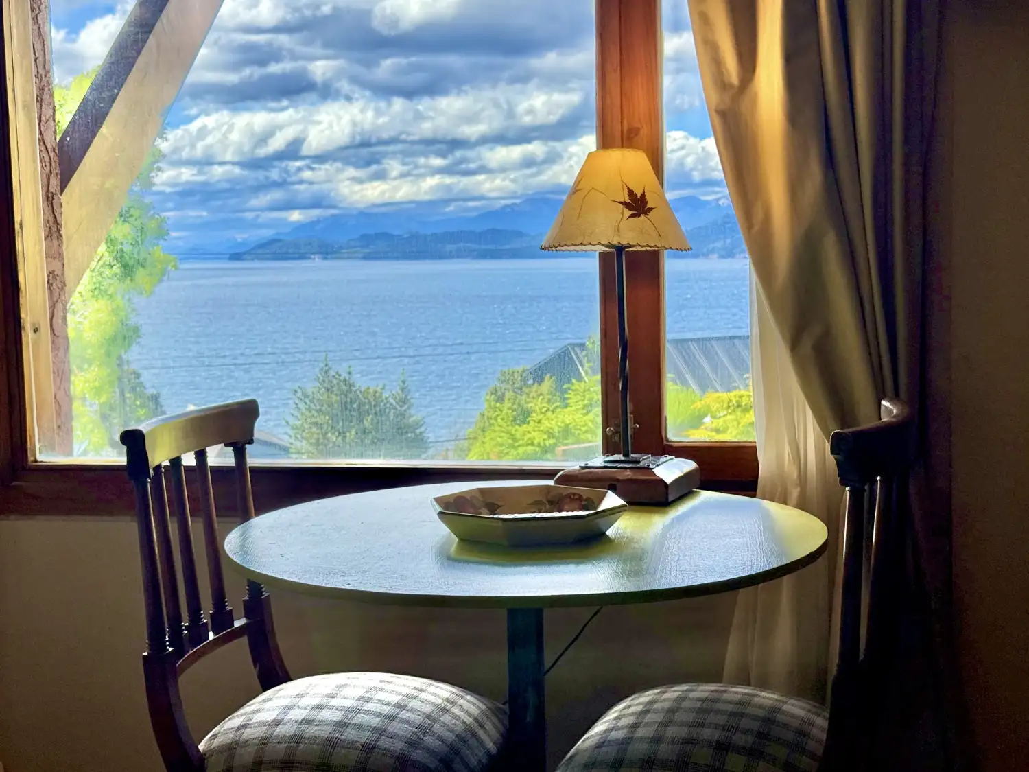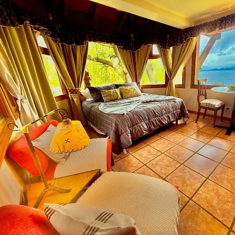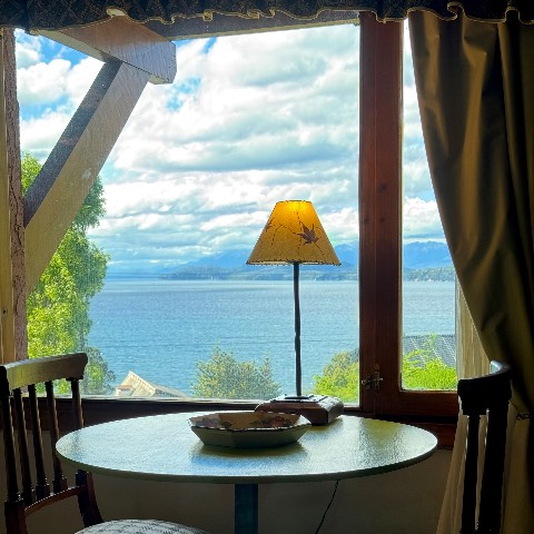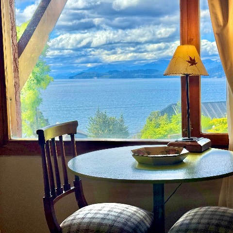 Vista al Lago Nahuel Huapi, Isla Victoria y Cordillera de los Andes. Ropa de cama , toallas, vajilla, horno microondas, heladera, tostadora y cafetera eléctricas, secador de cabello, Internet Wi Fi Fibra òptica . Direct TV Satelital , Netflix , etc.